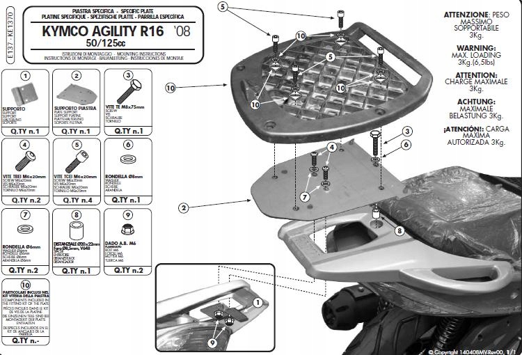 KAPPA STELAŻ KUFRA CENTRALNEGO KYMCO AGILITY 50/125/150/200 R16 (08-13) ( B Kappa