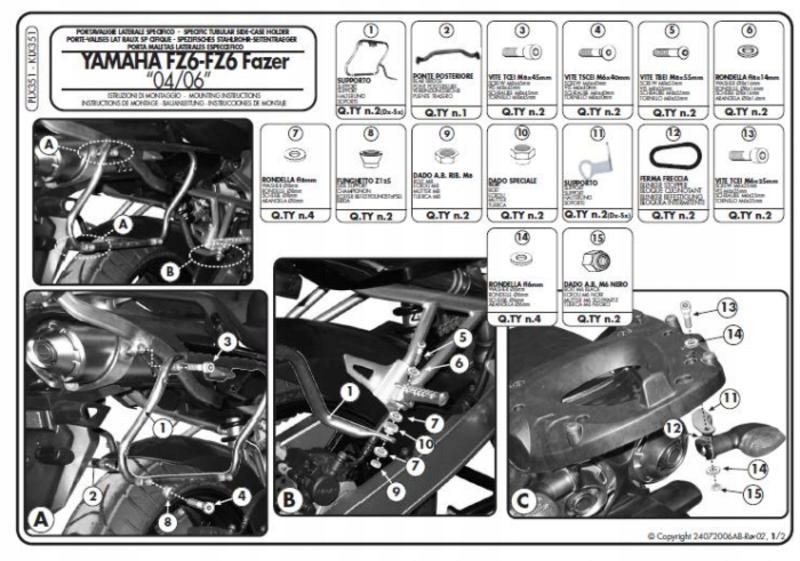 KAPPA STELAŻ KUFRÓW BOCZNYCH MONOKEY SIDE YAMAHA FZ6 / FAZER (04-06) – TYLK Kappa